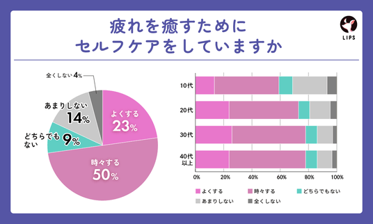 疲れを癒すためにセルフケアを行なっている人は70%以上