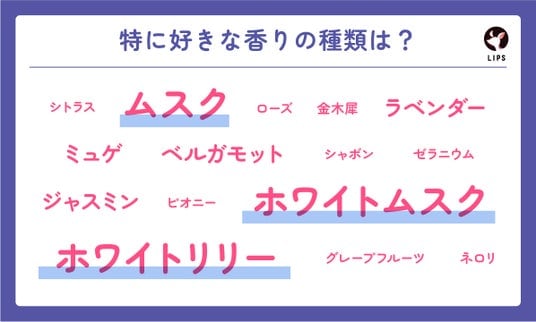 好きな香りの種類トップ3は「ムスク」「ホワイトムスク」「ホワイトリリー」