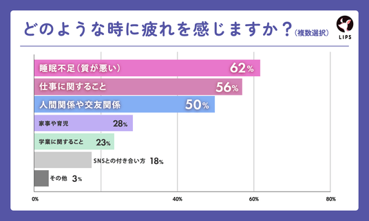 ユーザーの回答からも、多くの人が慢性的な疲れを抱えている現状がうかがえ、いま語られている"疲れに関する社会的なテーマ"とも重なる結果となりました。