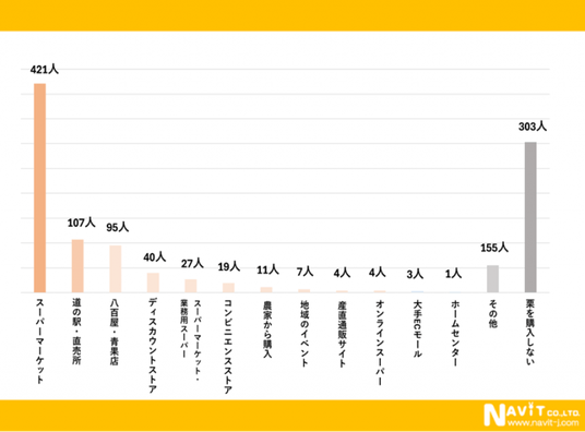 栗を購入する場所についてのアンケートを複数回答にていただきました。購入場所で1番多かったのが「スーパーマーケット」で421人、次に多かったのが「道の駅・直売所」で107人、3番目が「八百屋・青果店」で95人という結果になりました。