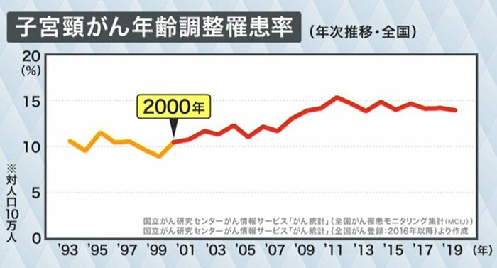 日本人女性の子宮頸がん罹患者数は2000年以降増加傾向で、今後さらに増えると予想されている。