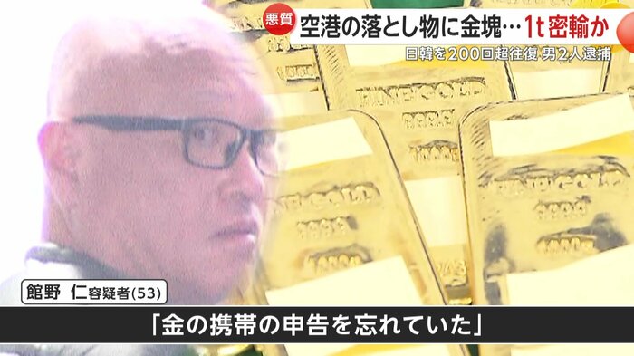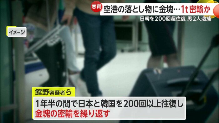 桜井容疑者と館野容疑者は、1年半の間で日本と韓国を200回以上往復して密輸を繰り返し、これまでに金塊約1トンを108億円ほどで売りさばいたとみられている。