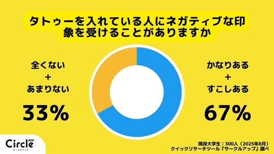 タトゥーに対して「ネガティブな印象がある」と答えた人は67%と、依然として慎重な見方が主流だ。