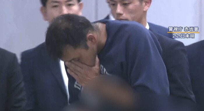 翌23日の送検時には、グレーのスウェットにマスク姿で終始顔をふせています。