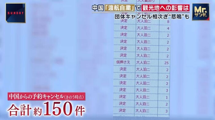 中国から予約のキャンセルが相次ぎ、その数は150件に上るという。