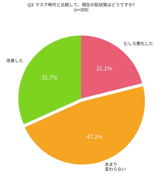 マスク着用が日常だった時期と比較して、現在の肌状態がどう変化したか調査しました。