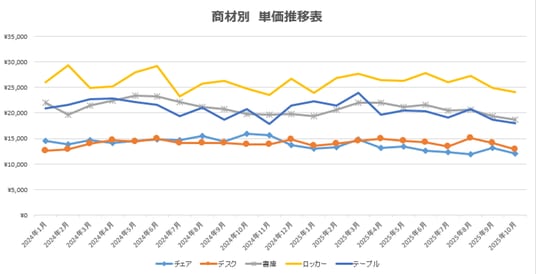 株式会社オフィスバスターズ(東京都千代田区、代表取締役社長:熊谷 正慶<東京証券取引所 TOKYO PRO Market 証券コード:5890>、以下「当社」)は、2025年10月度の「中古オフィス家具指数」を取りまとめました。毎月、当社の中古オフィス家具動向を広く皆様へお伝えすることで、法人・個人のお客様の動向や推移を分かりやすくご案内しています。