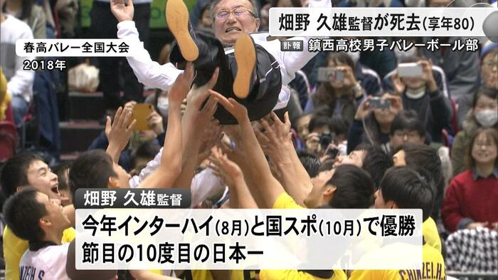 熊本の鎮西高校・男子バレーボール部を指導し、チームを10度の日本一に導いた畑野久雄監督が亡くなった。80歳だった。