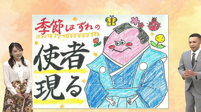この日の冒頭、古山予報士が「季節はずれの使者」としてイラストを紹介しました。季節外れの使者とはいったい・・・?正解は、なんと「黄砂」でした。「黄砂」と聞くと、多くの人が春の霞んだ空を思い浮かべるのではないでしょうか。「黄砂」は、中国大陸内陸部の砂漠地帯で巻き上げられた砂の粒子が、上空の風に乗って日本まで飛来する現象です。