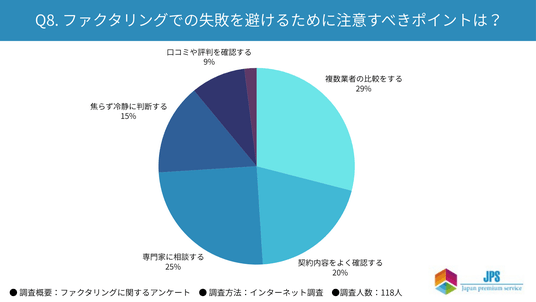 「Q8. ファクタリングでの失敗を避けるために注意すべきポイントは?」という質問に対する回答