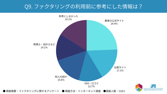「Q9. ファクタリングの利用前に参考にした情報は?」という質問に対する回答