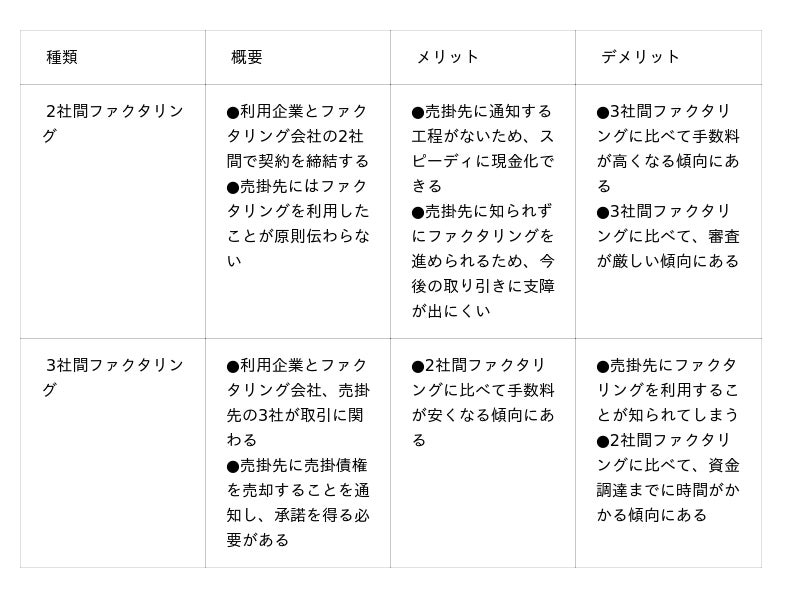 そもそも2社間ファクタリングと3社間ファクタリングでは、特徴やメリット・デメリットが異なります。自社の状況に合わせて、適した取引形態を選択することが後悔のないファクタリング利用につながるでしょう。