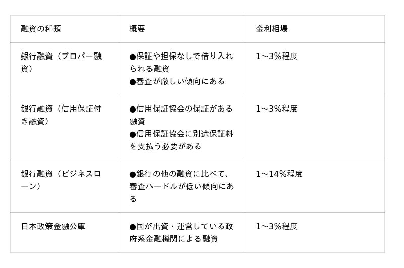 融資をはじめとした他の資金調達方法とファクタリングでは、さまざまな違いがあることを知っておきましょう。融資の場合、貸金業法や利息制限法によって金利に規制がかかっています。融資の種類によっても異なりますが、金利が極端に高く設定されることはありません。金利相場は以下の通りです。