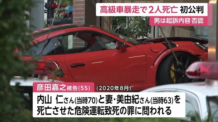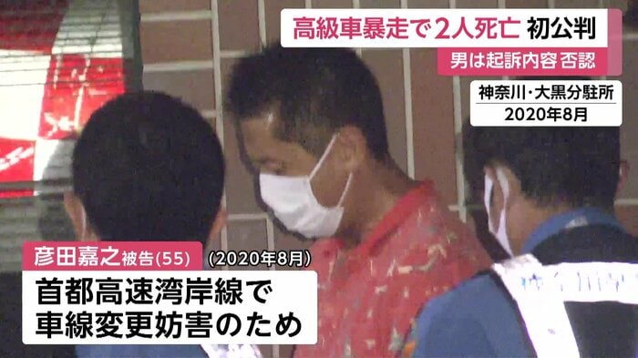 会社役員の彦田嘉之被告は2020年8月、川崎市の首都高湾岸線で車線変更を妨害する目的で、時速200キロから268キロで高級スポーツカーを運転して制御困難に陥り、前を走っていた乗用車に衝突して、乗っていた内山仁さんと妻・美由紀さんを死亡させた危険運転致死の罪に問われている。