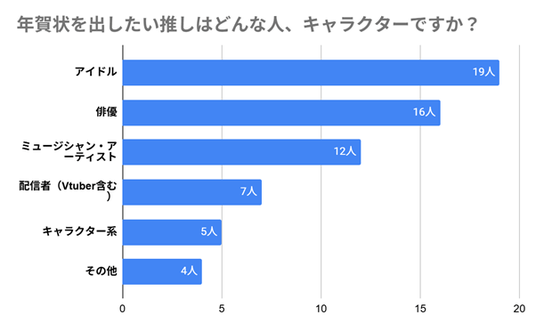 では、年賀状を送りたい「推し」とは、どのような人なのでしょうか。