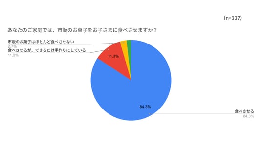 「市販のお菓子だと糖質、添加物が気になります。」「市販品で無添加をもっと増やしてほしい」など、市販のお菓子に含まれる添加物への不安の声も多数寄せられました。では、市販のお菓子をお子さんに食べさせている方はどのくらいいるのでしょうか。