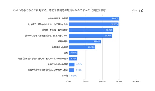 ・約半数が、おやつを与えることに不安や抵抗を感じている