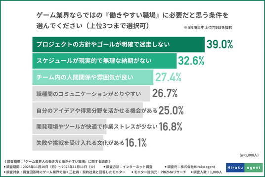 では、ゲーム業界で働く人々は、どのような環境を「働きやすい」と感じているのでしょうか。