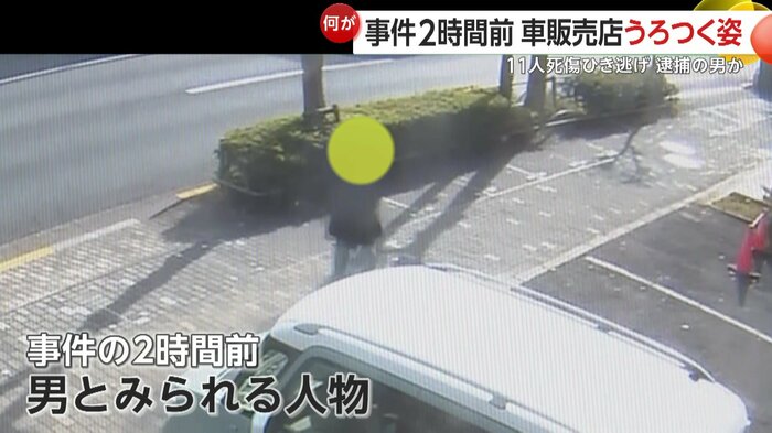 現場から700mほど離れた自動車販売店の近くの防犯カメラには、事件の2時間前、男とみられる人物が映っていた。