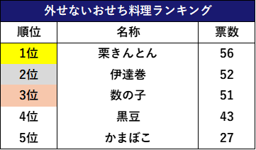 ▼外せないおせち料理ランキングTOP5 ※自由回答