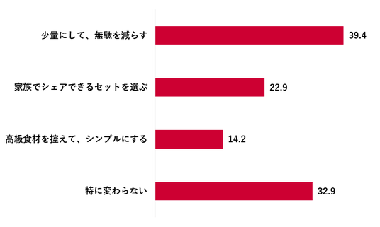 また、おせちを「前年より豪華にしたいとは思わない」が80.4%を占めた。伝統を維持しつつ、量や品数を調整するという現実的な対応をする様子がうかがえる。
