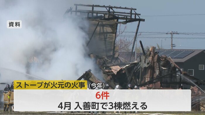 今年もストーブが火元となる火事が6件発生していて、4月に入善町で起きた火事は住宅など3棟が燃えました。
