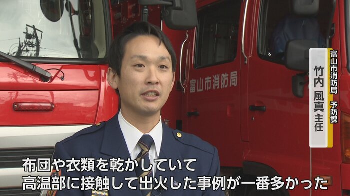 「布団や衣類を乾かしていて高温部に接触して出火した事例が一番多かった」