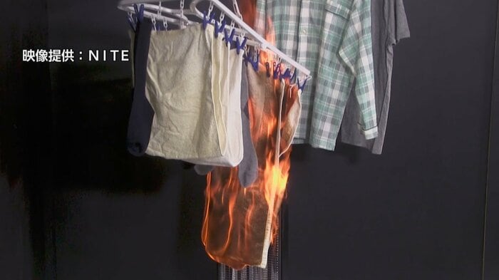 電気ストーブの上に干された洗濯物。タオルがストーブに接触すると煙が上がり、あっという間に炎に包まれました。
