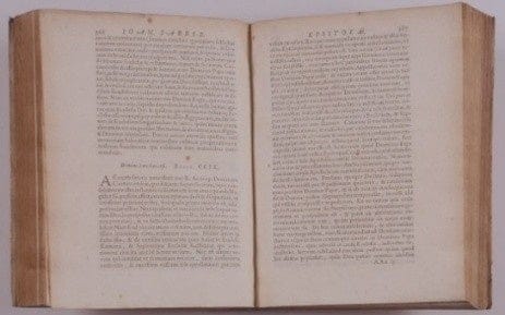 画像:「法皇シルベストII他書簡集」 Franciscum Salis発行 (フランス) 1611年、手すき紙に活版印刷し、革で製本されている。紙の博物館 提供