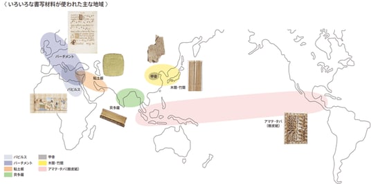 引用画像:[いろいろな書写材料が使われた 地域] 全て紙の博物館提供