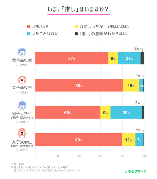 LINEリサーチ、全国の15~25歳の学生を対象に、推し活に関する調査を実施