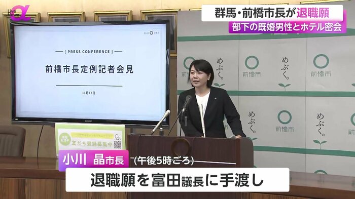 小川晶市長は25日午後5時頃、退職願を前橋市議会の富田公隆議長に手渡しました。富田議長は「市長ご本人が(退職願を)持ってきて直接手渡し頂きました」と説明しました。