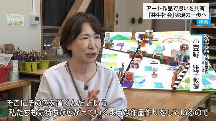 みやざき中央支援学校の児童・生徒たちが制作した絵画や立体物など68点の作品が並ぶアート展「ゆめいろステーション」が宮崎市で開催。言葉だけでは伝わりにくい個々の思いや感性が、自由な発想で表現された作品群は、鑑賞した人に新たな視点と共感をもたらしている。同校では、アート活動を通じて障害や支援学校への理解を深め、誰もが共に生きる「共生社会」の実現を目指している。