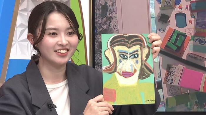中武さんに描いていただいた竹下凜アナウンサーの画。独創的であり、特徴も捉えている。