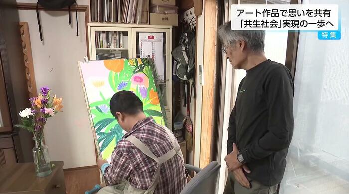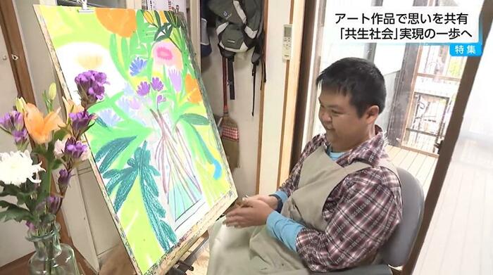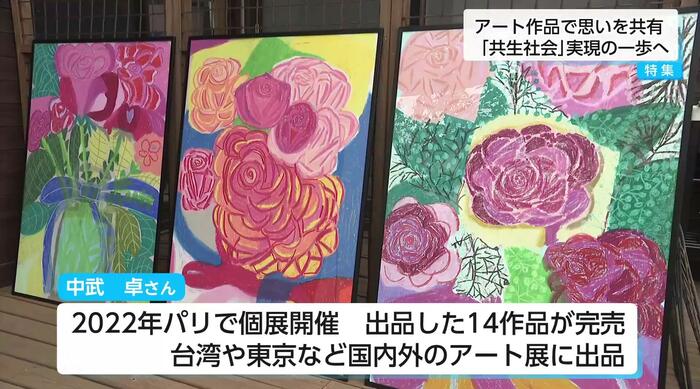 みやざき中央支援学校のOBで宮崎県内在住の画家、中武卓さんは、2022年にパリで開いた個展で出品した14作品全てが完売し、自由な発想で描かれた作品が高い評価を受けた。