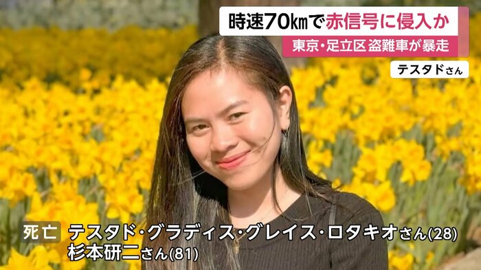 24日、足立区で盗難車が歩行者らを次々とはね、テスタド・グラディス・グレイス・ロタキオさん(28)と杉本研二さん(81)が死亡し、9人が重軽傷を負った。