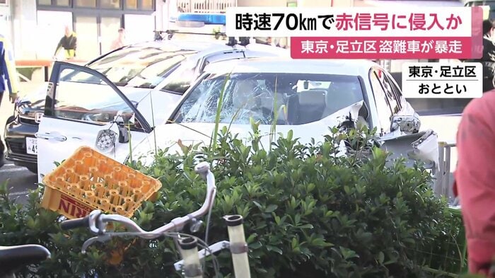 東京・足立区で11人が死傷したひき逃げ事件で、盗難車が時速70キロで赤信号の交差点に侵入したとみられることが分かった。