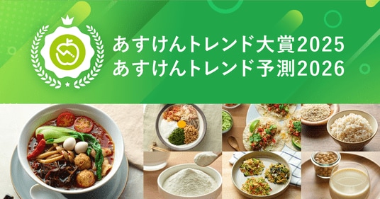 株式会社asken(東京都新宿区、代表取締役社長 中島洋、以下「当社」)は、累計会員数1,300万人超・国内No.1*¹のAI食事管理アプリ『あすけん』に登録された90億超の食事記録データなどに基づき、2025年に『あすけん』ユーザーに支持された、健康的なトレンド料理・食材を選出する『あすけんトレンド大賞2025』と、2026年の「食と健康」のトレンドとなり得る注目食材を予測する『あすけんトレンド予測2026』を発表します。