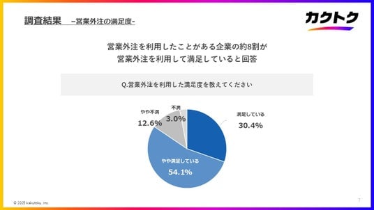 日本最大級の営業マッチングプラットフォーム「カクトク」を運営するカクトク株式会社(本社:大分県別府市、代表取締役:満田 聖也、以下「カクトク」)は、営業に関わる経営者・会社員500名を対象に「営業外注に関する調査」を実施しました。