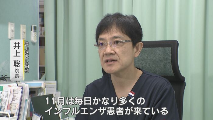 『井上さとし内科』院長の井上聡さんによると「10月から少しずつ増えていて、11月は毎日、沢山のインフルエンザの患者さんがいらっしゃいます。例年だと12月~1月くらいなんですが、1カ月ほど前倒しで、ピークというか波が来ている」という。