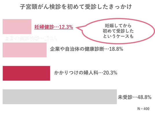 検診のきっかけは“婦人科の受診”が一位。妊娠して初めて受診するケースも