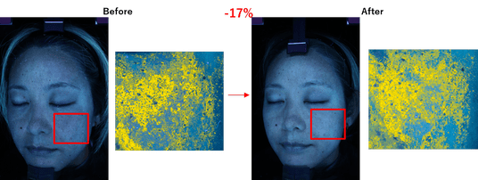 ■夏終わりの9月から11月まで毎日β‐カロテンを継続摂取したところ、7人中6人が「隠れジミ」の状態が改善傾向に!