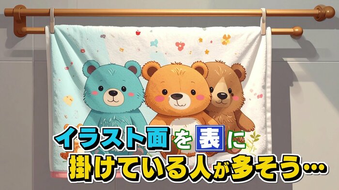 とはいえ、ラックにタオルを掛ける時、かわいいイラストやキャラクターが描かれた面を見えるようにしたい、と思うもの。