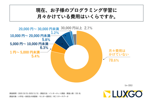 小学生~高校生の保護者の8割以上が、子どもにとってプログラミングを学ぶことは程度の差こそあれ「重要」と考えている!LUXGO株式会社が「子どものプログラミング教育に関する意識調査」を実施!