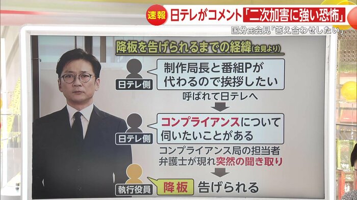 国分氏側「突然聞き取りが始まり降板告げられた」
