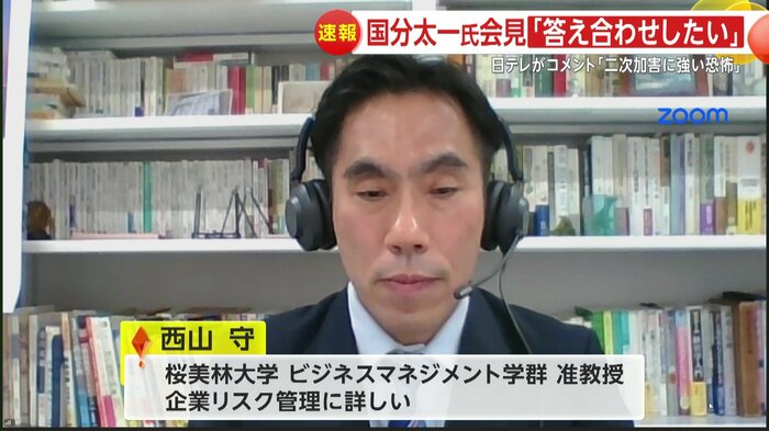企業のリスク管理に詳しい桜美林大学の西山守准教授に話を伺います。国分氏の会見は冒頭、謝罪から入りましたが、どのように見ましたか。