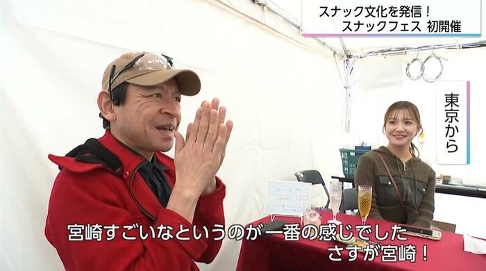 宮崎最大の繁華街「ニシタチ」では、独特の「スナック文化」が育まれてきた。その文化を広く伝えようと初めて開催された「スナックフェス」 宮崎駅前に10軒のスナックが出店し、屋外スナック横丁を形成、カラオケ大会なども開かれ、老若男女問わず多くの来場者が、スナックならではの交流を楽しんだ。