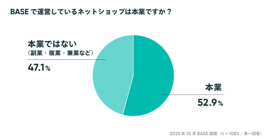BASE株式会社(所在地:東京都港区、代表取締役CEO:鶴岡 裕太)が運営するネットショップ作成サービス「BASE(ベイス)」は、「BASE」をご利用のショップを対象とした、ネットショップ開設・運営の利用状況に関する調査「オーナーズ調査2025」を実施しましたので、結果を発表いたします。