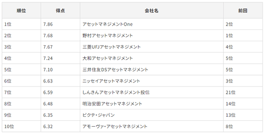 総合第1位は、アセットマネジメントOneが獲得しました。