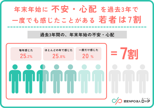 3.7割が過去3年間で「年末年始に不安を感じたことがある」と回答。一度も不安を感じていない若者は3割弱にとどまる。